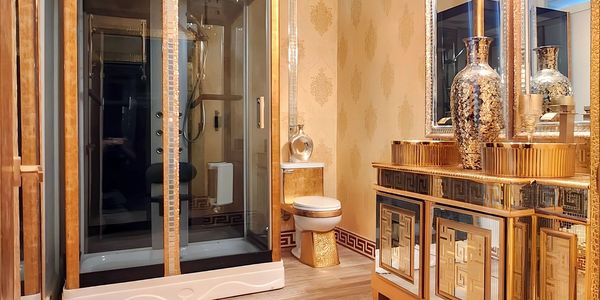 A first-of-its-kind masterpiece in the industry, this residence celebrates opulence with gold-plated bathtubs, toilets, and basins, all set within a stunning golden interior. dramatic library wall panels, and statement-making furniture in French, English, and Empire styles come together to create an unforgettable atmosphere of grandeur and artful excess.